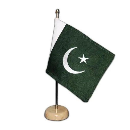 Pakistan Flag Marble Large. Display a flag on your table, express your love for your country. High-quality Pakistan table flag with marble base and stainless steel rod. Special 14 August gift to celebrate Independence Day.